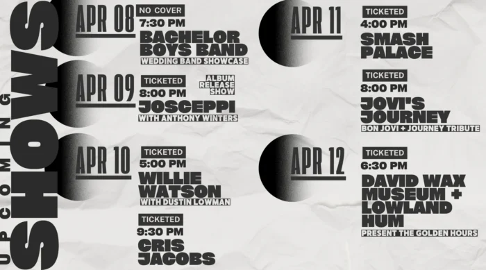 Fri Apr 17 Reggae Exodus - The 420 Roll Up: Tribute to Bob Marley with Jah People, Root Settaz, Crucial Doors: 7:00 PM | Show: 8:00 PM Ages 21+ TICKETS
