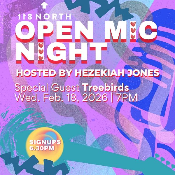 Wed Feb 18 No Cover! 118 North Open Mic Night hosted by Hezekiah Jones ft. Treebirds Doors: 5:30 PM | Show: 7:00 PM Ages 21+ TICKETS
