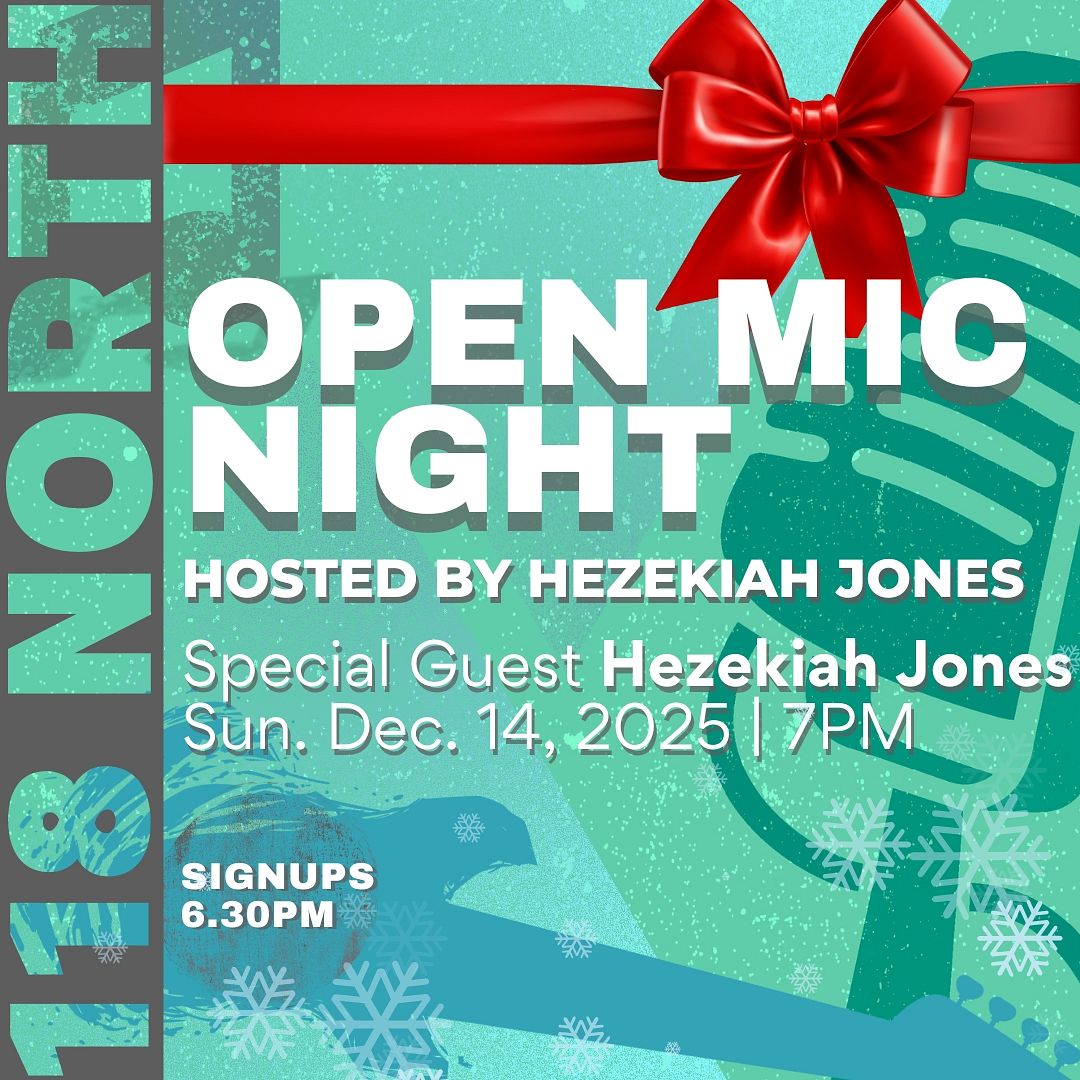 Sun Dec 14 No Cover! 118 North Open Mic Night hosted by Hezekiah Jones Doors: 5:30 PM | Show: 7:00 PM Ages 21+ TICKETS