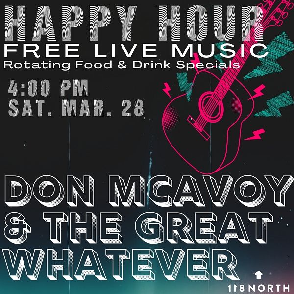 Sat Mar 28 Happy Hour Don McAvoy & the Great Whatever with Don McAvoy & the Great Whatever Doors: 4:00 PM | Show: 4:00 PM Ages 21+ TICKETS